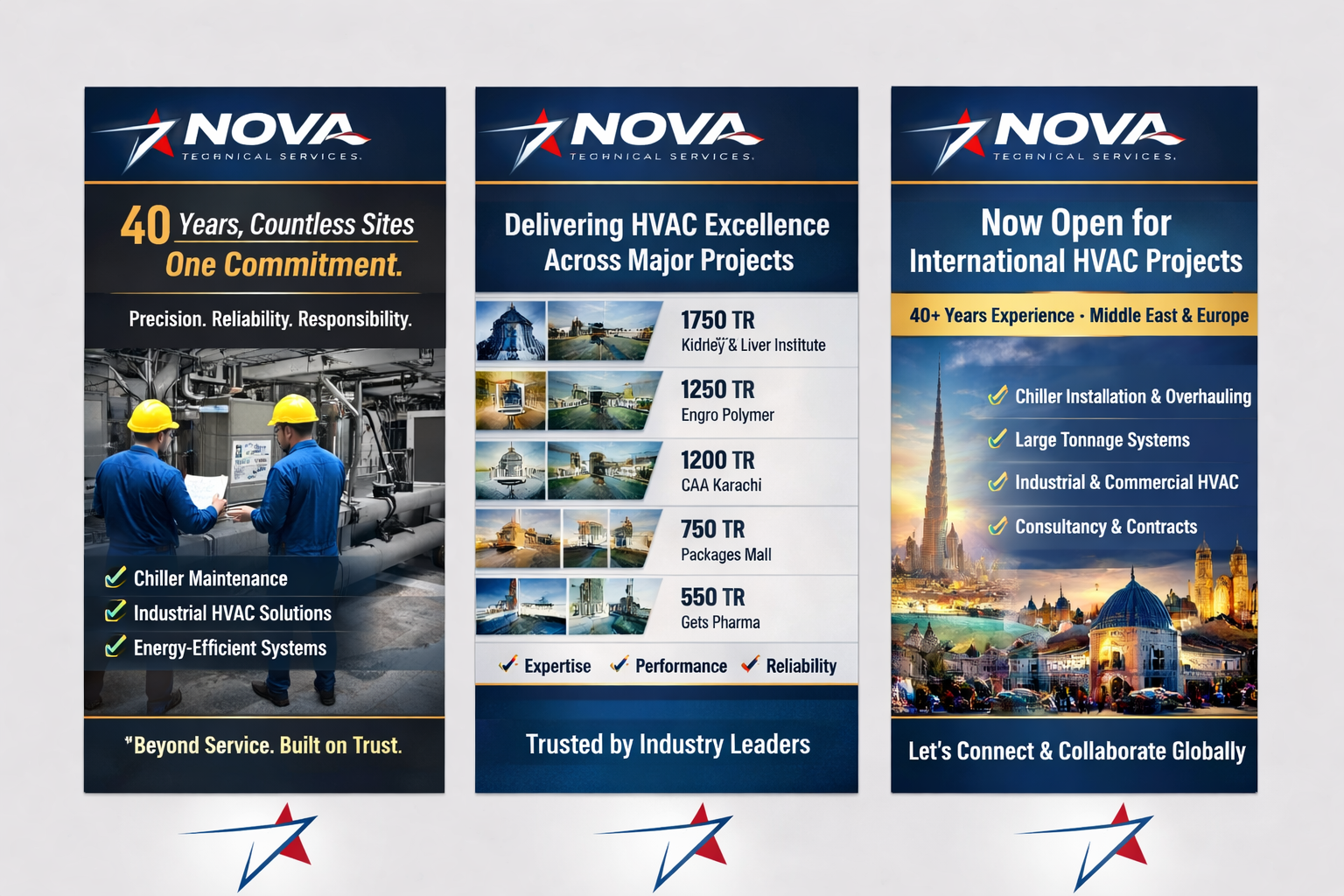 Nova Technical Services is a registered, MEP, HVAC & Refrigeration engineering, contracting and services company based in Pakistan, delivering complete Heating, Ventilation, Air Conditioning, and Refrigeration (HVAC&R) solutions along with equipment sales, installation, commissioning, and after-sales support.