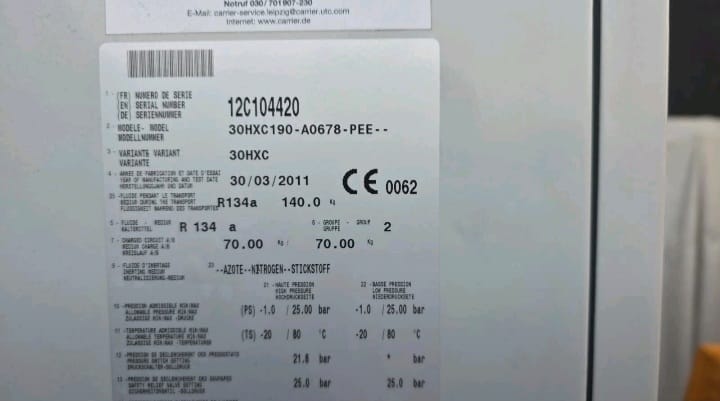 • Brand: Carrier (30HXC190)